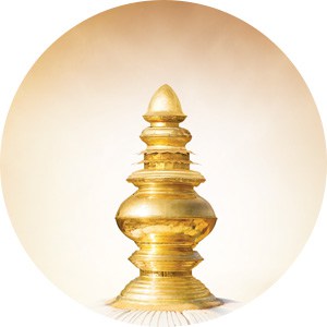 Amrutha-Kalasha, the pot-like structure on top of each spire, representing infinity, prosperity and wholeness. At the top of the kalasha, there is a pinhole which signifies the bindu (or the entire energy of our creation) which allows the flow of cosmic energies. The kalashas are energised by the recitation of sacred chants and rituals. It is the combination of the spires and the kalashams that forms a powerfully active and dynamic energy field within the sanctum.